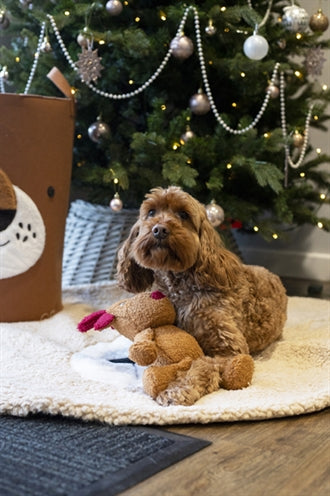 De Cupid & Comet Tufflove Reindeer is een feestelijke knuffelvriend met een stevige binnenkant – speciaal voor honden die graag iets steviger spelen. Deze pluche rendier is opgebouwd uit drie sterke lagen materiaal (pluche, mesh en nylon) en heeft verstevigde naden op de belangrijkste spanningpunten. Zo blijft hij langer leuk dan de gemiddelde pluche kerstknuffel! De pieper in het lijf is extra beschermd en maakt het speelplezier compleet.
