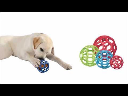 De JW Hol-Ee Roller Jumbo Assorti 20 is een speelbal voor de hond, gemaakt van duurzaam rubber, zacht voor het gebit en ideaal om snacks in te verstoppen door de open structuur. De JW Hol-Ee Roller, wie kent hem niet! Deze populaire speelbal is van alle markten thuis en zal jouw hond urenlang bezig houden. De bal is gemaakt van duurzaam rubber, dat licht van gewicht is. Hierdoor is de bal gemakkelijk voort te schoppen, te gooien en mee te dragen, en is hij tevens zacht voor het gebit. Door de open structuur is de bal ook uitermate geschikt om hem te vullen met bijvoorbeeld snacks of traktaties. De Hol-Ee Roller kun je dus iedere keer anders gebruiken, waardoor hij garant staat voor urenlang speelplezier!