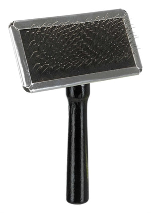 De Trixie Borstel Houten Greep / Metalen Pinnen Assorti van 13 x 9 cm per 3 st is een zachte borstel met metalen pinnen en borstelreiniger, geschikt voor alle vachttypen. Met de prettige borstel van Trixie houd jij de vacht van jouw hond glad en glanzend. Deze borstel is voorzien van metalen pinnen, waarmee je losse haren uit de vacht verwijdert en de vacht glad en glanzend maakt. Door de borstelreiniger die is meegeleverd is het eenvoudig de losse haren uit de borstel te verwijderen. Met houden greep, wordt assorti geleverd in diverse kleuren.